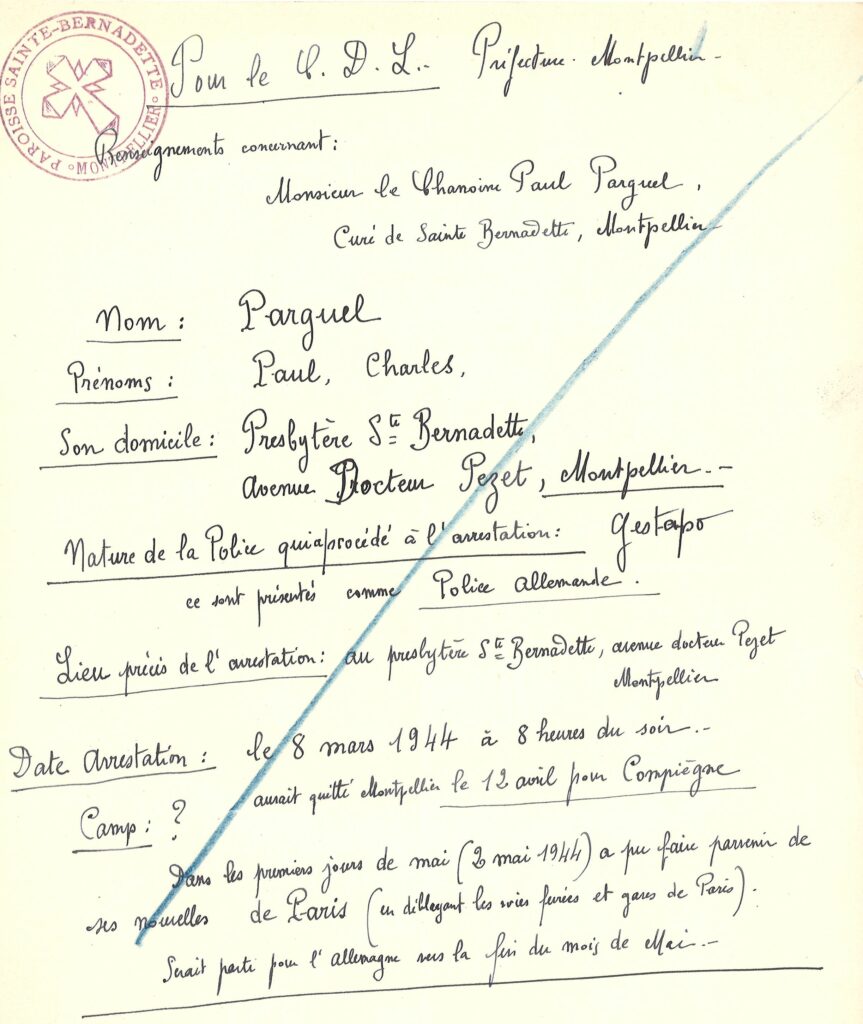 Après la guerre, Paul Parguel reprend son rôle au sein de la paroisse Sainte-Bernadette. Il consacre le reste de sa vie à sa communauté, transformant son église et son presbytère en lieux de recueillement, de transmission et d’espérance et en maison de foi.